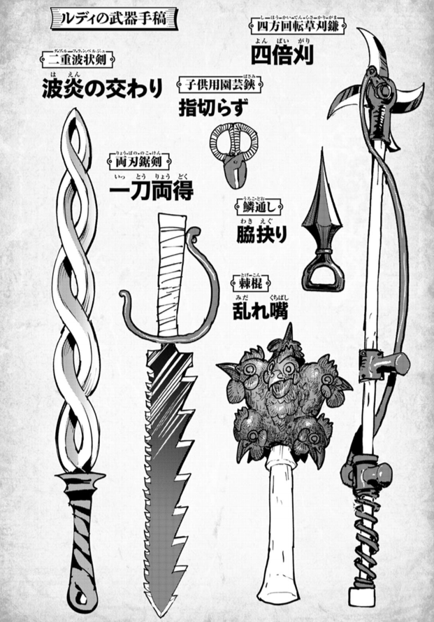 ルディが作る武器は、ただ強いだけでなく、見た目や機能にこだわったユニークなものばかりです。「世界一かっこいい武器」を目指すルディの豊かな発想力が、私たち読者を楽しませてくれます。