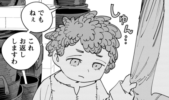 拷問器まがいの妙なモノばかり量産しているかと思いきや、割とちゃんと普通の仕事もしている様子。そもそも、彼女は鍛冶屋ではなく金物屋の弟子ですから。ただ、武器に憧れて、勝手に鍛冶屋を名乗って、厨二病武器を生み出しているだけなので。あくまでも現実的に生活をしていて、その中に武器の製作がある。こういう生活感が温かく描かれているなあという印象です。